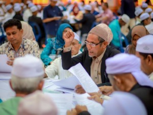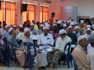 ภายในงานได้แบ่งกลุ่ม ผู้เข้ารับการอบรม ฯ แบ่งออกเป็น 13 อำเภอ ในพื้นที่จังหวัดปัตตานี เพื่อร่วมกันระดมความคิดเห็นและจัดทำแผนแนวทางในการแก้ไขปัญหาภายในชุมชน โดยใช้ใบงาน 5 หัวข้อหลัก ประกอบด้วย การปลูกฝัง ยะกีน (ความเชื่อมั่นในพระผู้เป็นเจ้า และการยึดมั่นในหนทางโดยไม่มีความสงสัยต่อพระองค์),การปลูกฝัง การฏออะห์ (การเชื่อฟังและปฏิบัติตามหลักคำสอน),การเชื่อมโยง ฮูกุมปากัต ที่มีอยู่เดิมในหมู่บ้านกับ ธรรมนูญหมู่บ้าน 9 ดี,การใช้แบบประเมินเกณฑ์มาตรฐานธรรมนูญหมู่บ้าน 9 ดี (ฮูกุมปากัต) และการแบ่งพื้นที่รับผิดชอบของหมู่บ้านในการขับเคลื่อนแผนงาน