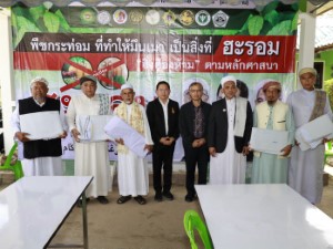 ทั้งนี้ ศอ.บต. ได้มอบป้ายไวนิลที่แสดงการต่อต้านพืชกระท่อมอย่างชัดเจน โดยมีข้อความบนป้ายไวนิลว่า “พืชกระท่อม ที่ทำให้มึนเมา เป็นสิ่งที่ฮะรอม สิ่งต้องห้าม ตามหลักศาสนา” ซึ่งจะมอบให้กับสมาคมสถาบันปอเนาะ 5 จังหวัดชายแดนภาคใต้ ทั้งหมด 150 สถาบัน โดยบางสถาบันก็ได้เริ่มมีการขึ้นป้ายเพื่อแสดงถึงการต่อต้านพืชกระท่อมไว้แล้ว