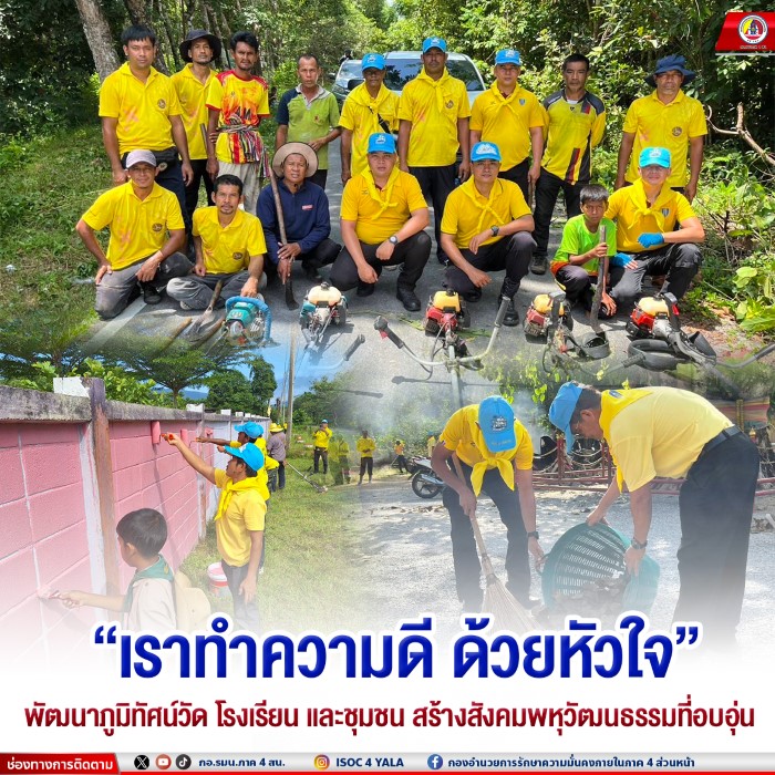 กิจกรรมในครั้งนี้ มุ่งเน้นการพัฒนาปรับปรุงภูมิทัศน์บริเวณสองข้างทางวัด โรงเรียน และชุมชน ในพื้นที่อำเภอรามัน และอำเภอบันนังสตา จังหวัดยะลา เพื่อเพิ่มทัศนวิสัยในการสัญจรทางถนน อำนวยความปลอดภัยแก่ประชาชนผู้ใช้เส้นทาง นอกจากจะเป็นการปรับปรุงสิ่งแวดล้อมให้สะอาด สวยงามแล้ว ยังสะท้อนให้เห็นถึงพลังแห่งความร่วมมือร่วมใจ ระหว่างเจ้าหน้าที่ทหารและพี่น้องประชาชนในพื้นที่ ที่พร้อมใจกันลงแรงพัฒนาท้องถิ่นอย่างเต็มกำลัง