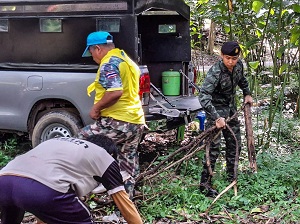 เมื่อวันที่ 25 กรกฎาคม 2568 ณ อุทยานแห่งชาติเขื่อนบางลาง ตำบลถ้ำทะลุ อำเภอบันนังสตา จังหวัดยะลา หน่วยเฉพาะกิจกองพันทหารราบที่ 1 (ฉก.พัน.ร.ที่ 1) จัดกำลังพลจากกองร้อยทหารราบที่ 1 ร่วมกับส่วนราชการในพื้นที่ และพี่น้องประชาชนในตำบลบันนังสตา รวมพลังจิตอาสา จัดกิจกรรม “บำเพ็ญสาธารณประโยชน์” ภายใต้โครงการ “ร่วมใจภักดิ์ รักษ์สิ่งแวดล้อม และทำงานสาธารณประโยชน์”