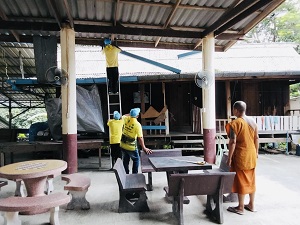 โดยกิจกรรมในครั้งนี้ได้ร่วมกันพัฒนาและปรับปรุงภูมิทัศน์บริเวณโดยรอบที่พักสงฆ์ในพื้นที่บ้านสายบน หมู่ที่ 3 ตำบลกาหลง อำเภอศรีสาคร จังหวัดนราธิวาส ให้มีความเป็นระเบียบเรียบร้อย สะอาด สวยงาม ซึ่งกิจกรรมดังกล่าวไม่เพียงแต่เป็นการแสดงออกถึงความจงรักภักดี แต่ยังเป็นการเสริมสร้างความสัมพันธ์อันดีระหว่างเจ้าหน้าที่กับประชาชนในพื้นที่ ต่อยอดสู่การสร้างความรัก ความสามัคคีในชุมชนอย่างยั่งยืน