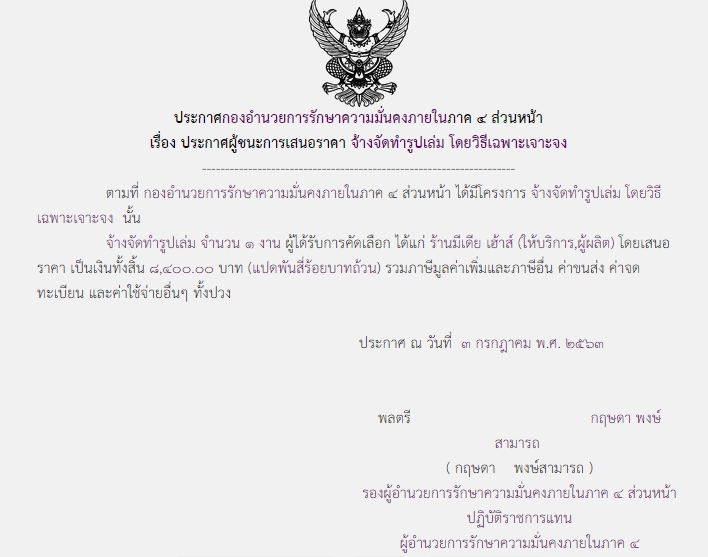 ประกาศผู้ชนะการเสนอราคา จ้างจัดทำรูปเล่ม โดยวิธีเฉพาะเจาะจง(๒)