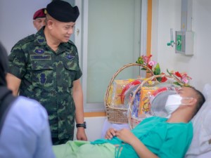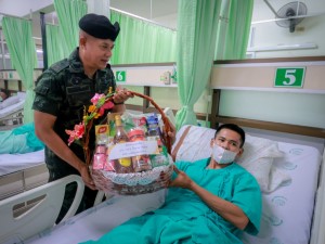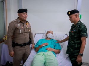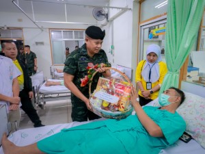 During the visit, Lt. Gen. Paisan inquired about the officers’ conditions and presented gift baskets as a gesture of encouragement. He expressed his wishes for their prompt physical and mental recovery and urged them to strictly follow medical advice. He also instructed the responsible agencies to expedite the provision of welfare and entitlements to the injured officers as quickly as possible.