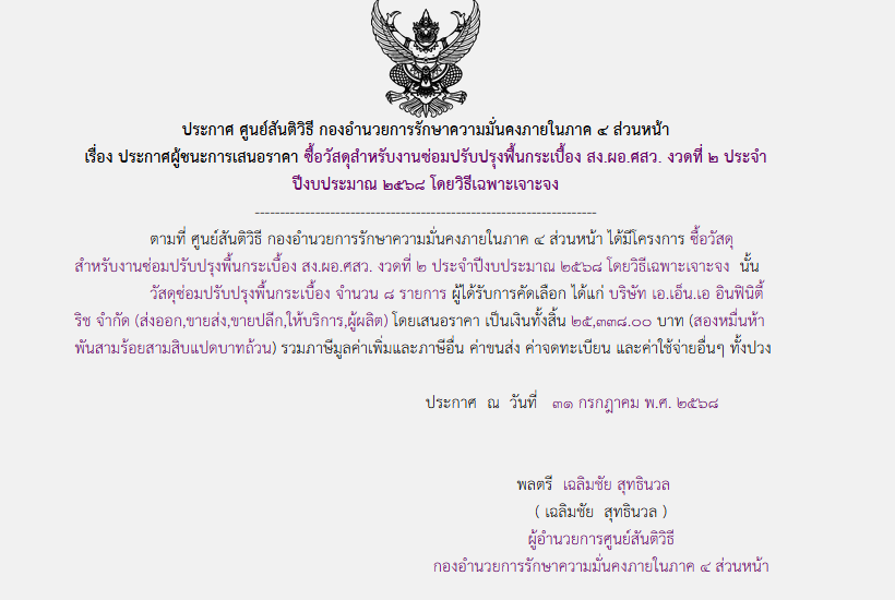 จัดซื้อ จัดจ้างประกาศผู้ชนะการเสนอราคา ประกาศผู้ชนะการเสนอราคา ซื้อวัสดุสำหรับงานซ่อมปรับปรุงพื้นกระเบื้อง สง.ผอ.ศสว. งวดที่ ๒ ประจำ ปีงบประมาณ ๒๕๖๘ โดยวิธีเฉพาะเจาะจง August 2, 2025 154 Share Facebook Twitter Google+ Telegram LINE