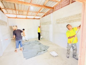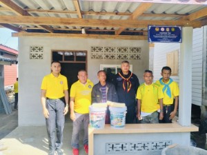 On 5 August 2025 at 09:00 hrs, volunteer personnel under the “We Do Good Deeds with Our Hearts” initiative from Ranger Company 4913 were deployed to Ban To Lang, Village No. 1, Tambon Tamayung, Sri Sakhon District, Narathiwat Province, to provide paint and painting supplies to Mr. Makor and Ms. Mime, impoverished residents of the area. The personnel also participated in painting a newly constructed house built to replace the deteriorated one previously occupied by the family.