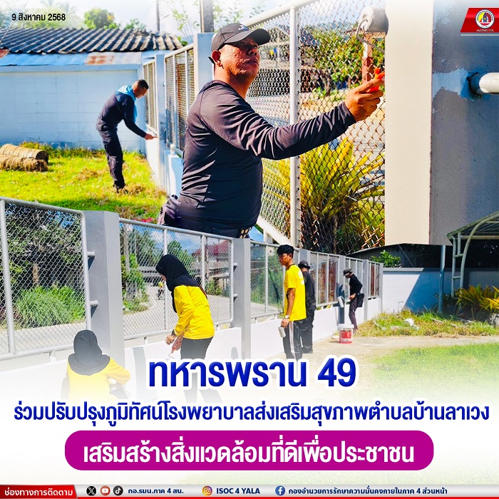 Pada 8 Ogos 2568, jam 9.00 pagi, Unit Khas Rejimen Askar Pran 49 hantar anggota dari Tim Operasi Hal Ehwal Awam, Kompeni Pran 4912, berganding bahu dengan staf Klinik Kesihatan Kampung Laweng, Kampung No. 3, Mukim Choeng Khiri, Daerah Sri Sakhon, Wilayah Narathiwat – jalankan aktiviti cantikkan kawasan sekeliling. Mereka sama-sama cat pagar di sekeliling klinik, untuk jadikan tempat tu lebih bersih, kemas dan sedap mata tengok – khas untuk orang ramai yang datang terima rawatan.