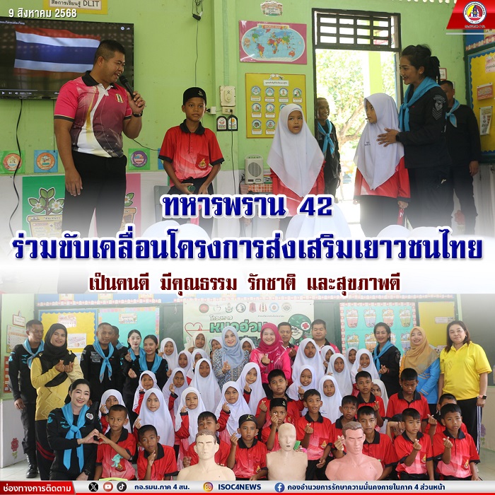 Pada 8 Ogos 2568, di Sekolah Ban Tha Kun, Daerah Yaring, Wilayah Pattani – Unit Khas Rejimen Askar Pran 42 hantar anggota dari Tim Hal Ehwal Awam – Skuad Wanita, bersama Kompeni Pran 4202, berganding bahu dengan staf dari Pejabat Kesihatan Wilayah Pattani, guru-guru dan ketua jabatan tempatan – anjurkan program bawah projek “Sekolah Selamat”, untuk tanam nilai akhlak baik, moral, dan cinta tanah air dalam hati anak-anak muda.