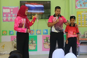 Dalam program ni, ada aktiviti ajar asas pertolongan cemas & CPR, ceramah tentang erti bendera Thai, dan aktiviti “Anak Baik, Cinta Negara” – yang tekankan tentang peranan tiga tiang utama negara: Negara, Agama dan Raja, serta cara hidup aman damai bersama dalam masyarakat. Guru, pelajar dan orang kampung ramai yang datang sertai dengan semangat.
