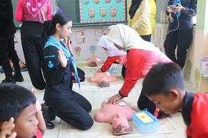 The activities included first aid and basic life support (CPR) training, a lecture on the meaning of the Thai national flag, and the “Good Kids, Love Thailand” session, which emphasized the significance of the three core institutions of the nation—Nation, Religion, and Monarchy—and the importance of peaceful coexistence within society. The event was actively participated in by teachers, students, and local residents, highlighting the collective commitment to nurturing national consciousness and unity among the younger generation.
