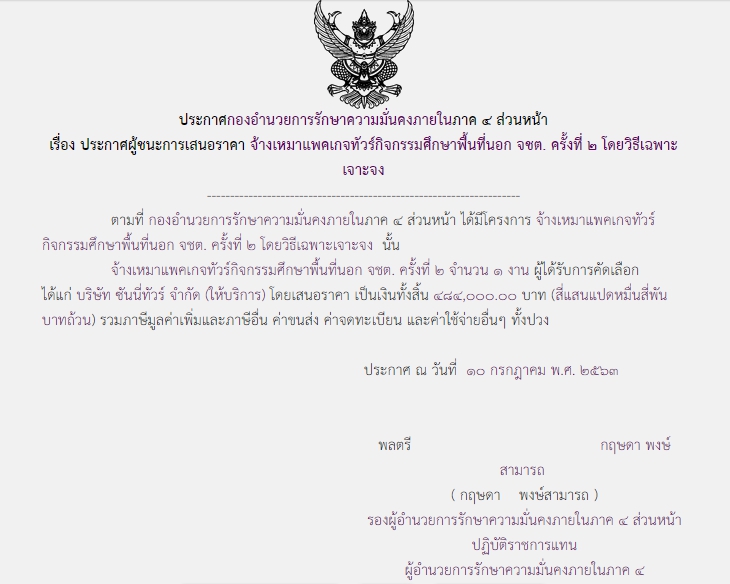 จัดซื้อ จัดจ้างประกาศผู้ชนะการเสนอราคา ประกาศผู้ชนะการเสนอราคา จ้างเหมาแพคเกจทัวร์กิจกรรมศึกษาพื้นที่นอก จชต.ครั้งที่ ๒ โดยวิธีเฉพาะเจาะจง July 19, 2020 765 Share Facebook Twitter Google+ Telegram LINE
