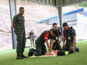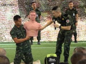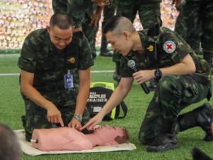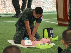 การอบรมในครั้งนี้ ผู้เข้ารับการอบรมจะได้รับความรู้วิธีการช่วยชีวิตขั้นพื้นฐาน (Cardiopulmonary Resuscitation, CPR) การปฐมพยาบาลเพื่อช่วยเหลือผู้ประสบเหตุที่หยุดหายใจหรือหัวใจหยุดเต้นให้กลับมาหายใจ และมีการไหลเวียนออกซิเจนรวมทั้งเลือดกลับคืนสู่สภาพเดิม พร้อมทั้งป้องกันเนื้อเยื่อไม่ให้ได้รับอันตรายจากการขาดออกซิเจนอย่างถาวร โดยการกดหน้าอกและช่วยหายใจ รวมถึงการใช้เครื่องกระตุกหัวใจไฟฟ้าอัตโนมัติ (Automated External Defibrillator, AED) ซึ่งเป็นอุปกรณ์อิเล็กทรอนิกส์แบบพกพาชนิดหนึ่ง ที่สามารถวินิจฉัยภาวะหัวใจเต้นผิดจังหวะที่เป็นอันตรายถึงชีวิตได้โดยอัตโนมัติ และสามารถให้การรักษาด้วยการช็อกไฟฟ้ากระตุกหัวใจ โดยใช้กระแสไฟฟ้าหยุดรูปแบบการเต้นของหัวใจที่ผิดจังหวะ เพื่อเปิดโอกาสให้หัวใจกลับมาเต้นใหม่ในจังหวะที่ถูกต้อง ซึ่งกำลังพลที่เข้ารับการฝึกอบรมจะได้รับความรู้ทั้งทางทฤษฎี และการปฏิบัติจริง เพื่อให้เกิดความชำนาญในการช่วยชีวิตเบื้องต้นหากเกิดเหตุการณ์ฉุกเฉินขึ้น