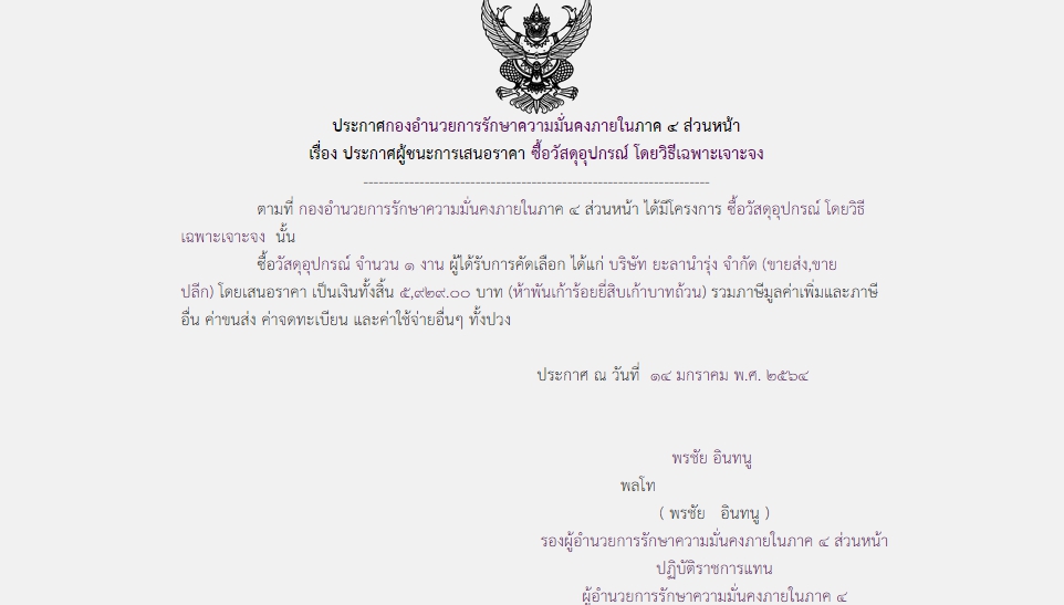 ประกาศผู้ชนะการเสนอราคา ซื้อวัสดุอุปกรณ์ โดยวิธีเฉพาะเจาะจง ( ๕,๙๒๙.๐๐ บาท )