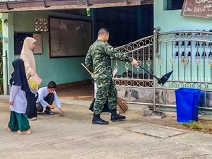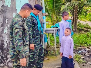 เมื่อวันที่ 17 สิงหาคม 2568 หน่วยเฉพาะกิจ กองพันทหารราบที่ 1 (ฉก.พัน.ร.ที่ 1) จัดกำลังพลชุดปฏิบัติการเสริมสร้างความเข้าใจ ลงพื้นที่พบปะบุคลากรทางการศึกษาและเยาวชนโรงเรียนสอนศาสนา (ตาดีกา) เพื่อแลกเปลี่ยนความคิดเห็นและพัฒนาสัมพันธ์อย่างใกล้ชิดกิจกรรมในครั้งนี้ มีกิจกรรมเคารพธงชาติร่วมกันภายใต้ “โครงการเสาธง 5 นาที” ซึ่งมุ่งปลูกฝังค่านิยมอันดีให้กับเยาวชน ในการยึดมั่นอุดมการณ์ “รักชาติ ศาสนา และพระมหากษัตริย์”