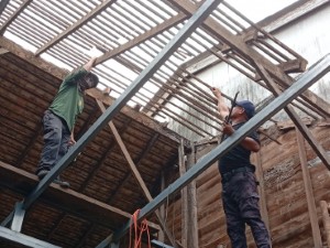 Sekarang kerja-kerja pasang rangka bumbung besi sedang dibuat, dah siap lebih 35%. Dijangka semua kerja akan siap tak lama lagi. Kerjasama erat antara askar dan orang kampung tunjuk semangat bantu sama-sama. Ini juga bukti askar bukan saja jaga keselamatan, tapi juga jaga kebajikan rakyat.