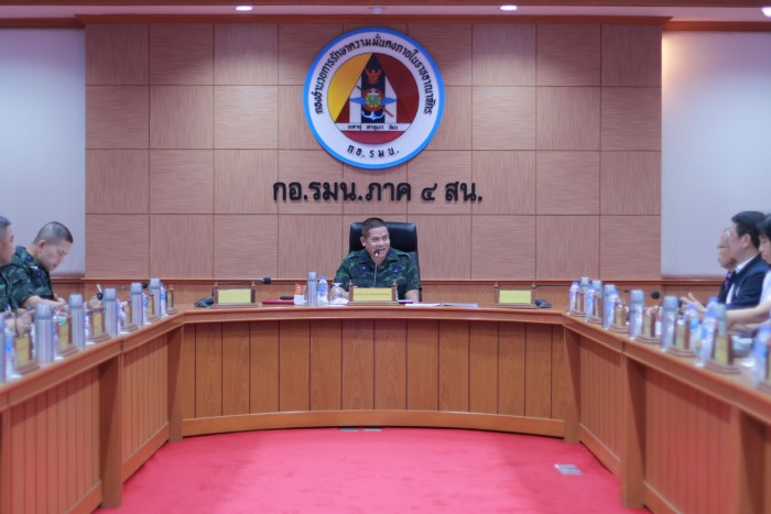 วันที่ 27 สิงหาคม 2568 เวลา 14.30 น. ที่กองอำนวยการรักษาความมั่นคงภายในภาค 4 ส่วนหน้า ค่ายสิรินธร ตำบลเขาตูม อำเภอยะรัง จังหวัดปัตตานี พลโท ไพศาล หนูสังข์ แม่ทัพภาคที่ 4 / ผู้อำนวยการรักษาความมั่นคงภายในภาค 4 เป็นประธานการประชุมคณะกรรมการศูนย์อำนวยการป้องกันและปราบปรามยาเสพติดจังหวัดชายแดนภาคใต้ โดยมีคณะผู้บังคับบัญชา ผู้แทนฝ่ายอำนวยการ กองอำนวยการรักษาความมั่นคงภายในภาค 4 ส่วนหน้า และหน่วยงานที่เกี่ยวข้องเข้าร่วม เพื่อติดตามสถานการณ์และการขับเคลื่อนงานด้านยาเสพติดในพื้นที่จังหวัดชายแดนภาคใต้ รวมทั้ง 4 อำเภอของจังหวัดสงขลา ให้มีความเข้มข้นและมีประสิทธิภาพยิ่งขึ้น
