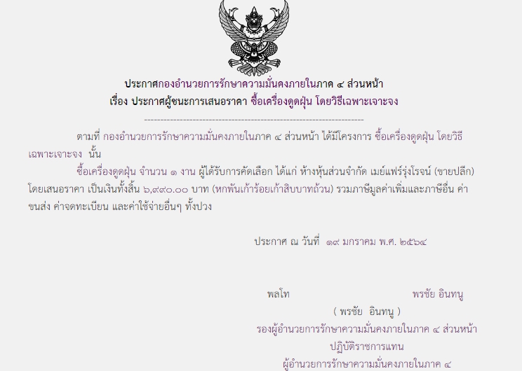 จัดซื้อ จัดจ้างประกาศผู้ชนะการเสนอราคา ประกาศผู้ชนะการเสนอราคา ซื้อเครื่องดูดฝุ่น โดยวิธีเฉพาะเจาะจง ( ๖,๙๙๐.๐๐ บาท ) January 21, 2021 870 Share Facebook Twitter Google+ Telegram LINE กอ.รมน.ภาค ๔ สน.