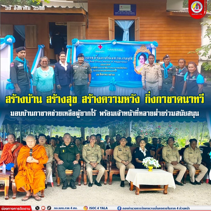 On 29 August 2025, at 10:00 a.m., a house located at No. 21, Village 9, Chang Subdistrict, Na Thawi District, Songkhla Province, was officially handed over to Mr. Thong Chuangrat, a local resident facing financial hardship. The handover ceremony was held under the framework of The Red Cross House of Happiness Project, initiated to support underprivileged and vulnerable individuals.