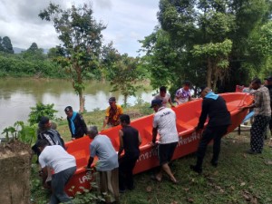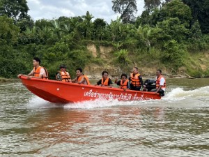The training session was conducted at the Sai Buri River, located near Ban Tha Ruea, and focused on developing skills in boat operation during disaster scenarios.