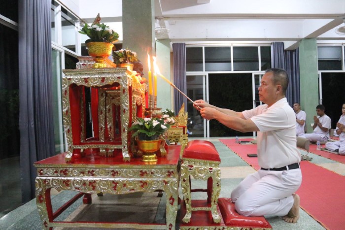 วันนี้ ( 31 สิงหาคม 2568 ) เวลา 19.00 น. ที่เขาพระศรีศากยมุณีพุทธโคดม ค่ายสิรินธร ตำบลเขาตูม อำเภอยะรัง จังหวัดปัตตานี พลเอก วรเศรษฐ์ เจริญพล รองผู้อำนวยการสำนักอำนวยการข่าวกรอง กองอำนวยการรักษาความมั่นคงภายในภาค 4 ส่วนหน้า นำกำลังพลกองอำนวยการรักษาความมั่นคงภายในภาค 4 ร่วมกันสวดมนต์บูชาธรรม เนื่องในวันพระประจำสัปดาห์ โดยอัญเชิญบทสวด “ธัมมจักกัปปวัตตนสูตร” และบทสวด “โพชฌังคปริตร” ร่วมอธิษฐานจิตถวายพระพร ด้วยหัวใจแห่งความจงรักภักดี เพื่อถวายพระพรชัยมงคลแด่พระบาทสมเด็จพระเจ้าอยู่หัว ตลอดจนพระบรมวงศานุวงศ์ และถวายพระพรชัยมงคลแด่สมเด็จพระเจ้าลูกเธอ เจ้าฟ้าพัชรกิติยาภา นเรนทิราเทพยวดี กรมหลวงราชสาริณีสิริพัชร มหาวัชรราชธิดา ขอให้พระองค์ทรงหายจากพระอาการประชวรในเร็ววัน ซึ่งพสกนิกรทั่วไทยต่างเฝ้าติดตามพระอาการ พร้อมร่วมใจถวายพระพร ด้วยความจงรักภักดี