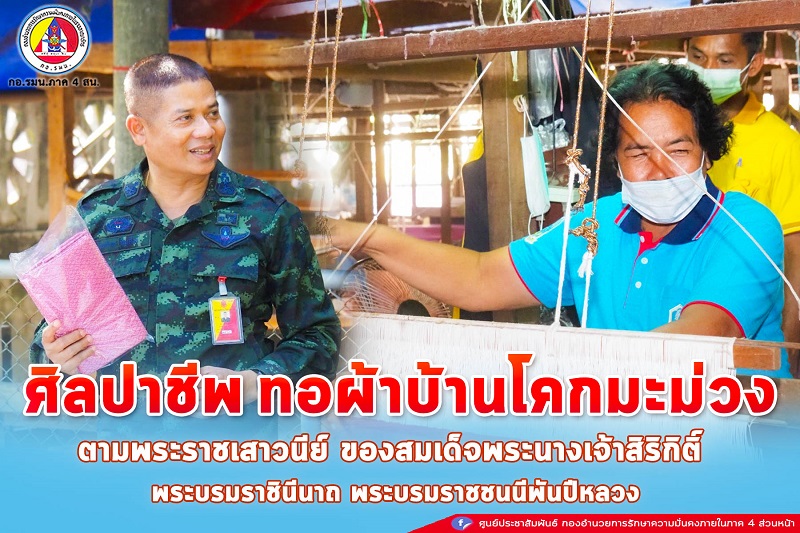 เมื่อวันที่ 21 มกราคม 2564 เวลา 15.00 น. พลตรี ไพศาล หนูสังข์ ผู้บัญชาการกองพลทหารราบที่15 / ผู้อำนวยการศูนย์ประสานงานโครงการอันเนื่องมาจากพระราชดำริ เดินทางลงพื้นที่ ตรวจเยี่ยม พบปะ พูดคุย สานสัมพันธ์ และสอบถามความเป็นอยู่ ปัญหาข้อขัดข้อในการดำเนินงาน พร้อมทั้งมอบชุดยังชีพ เพื่อเป็นขวัญ และกำลังใจให้กับพี่น้องสมาชิกโครงการศิลปาชีพ กลุ่มทอผ้าบ้านโคกมะม่วง ตามพระราชเสาวนีย์ ของสมเด็จพระนางเจ้าสิริกิติ์ พระบรมราชินีนาถ พระบรมราชชนนีพันปีหลวง ณ กลุ่มศิลปาชีพทอผ้าบ้านโคกมะม่วง ตั้งอยู่ในวัดโคกมะม่วง หมู่ที่ 4 ตำบลบ้านพร่อน อำเภอตากใบ จังหวัดนราธิวาส โดยมี พันเอก ยุทธนา สายประเสริฐ ผู้บังคับการกรมทหารราบที่ 151 / หัวหน้าคณะทำงานฯ ที่ 3, พันโททวีรัตน์ เบญจาทิกุล ผู้บังคับกองพันทหารราบที่1 กรมทหารราบที่ 151 / ผู้บังคับหน่วยเฉพาะกิจนราธิวาส 30 และสมาชิกโครงการศิลปาชีพ กลุ่มทอผ้าบ้านโคกมะม่วง ให้การต้อนรับ
