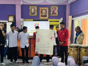 The program was jointly organized through the collaboration of the military unit, Si Sakhon District Territorial Defense Volunteers, educational personnel, and Peacebuilding Team 406, which provided expert speakers to deliver informative sessions to students and youth in the area. The objective was to raise awareness about the health risks associated with smoking and vaping, and to educate youth on preventive measures and how to avoid high-risk behaviors that could lead to long-term health problems.