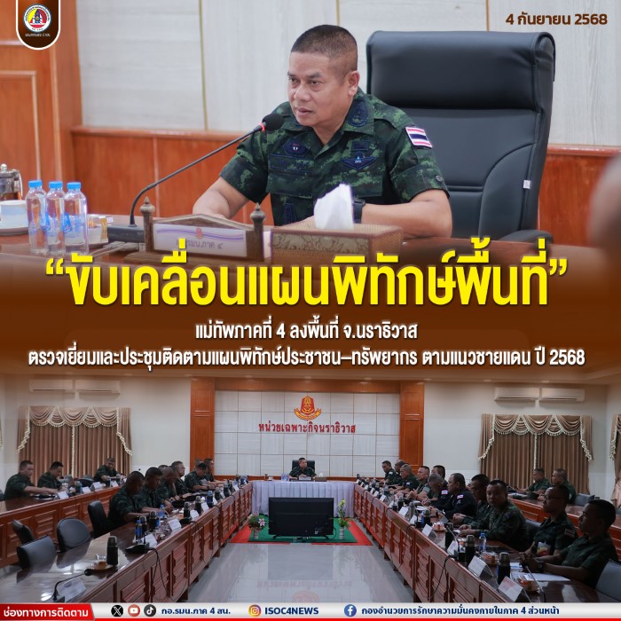 Hari ini (4 September 2025), jam 10.00 pagi, Lt Jen Paisan Nusang, Panglima Tentera Wilayah 4 dan juga Pengarah ISOC Wilayah 4, pengerusikan mesyuarat di Bilik Mesyuarat Task Force Narathiwat, Kem Kalyanivadhana, Daerah Mueang, Narathiwat. Turut hadir ialah pegawai-pegawai atasan dari Task Force Narathiwat, Marin Tentera Laut, dan Komando Suryothai.