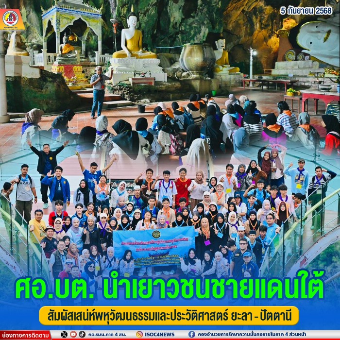 The youth were also taken to visit Wat Kuhaphimuk (Wat Na Tham) in Mueang District, Yala Province. This ancient temple dates back to the Srivijaya period and has long served as a spiritual center for the people of Yala.