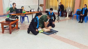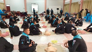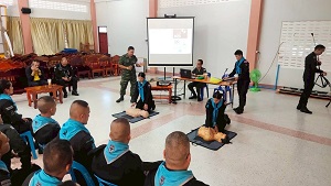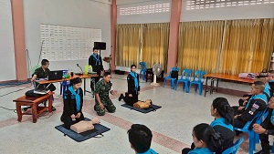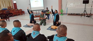 การอบรมในครั้งนี้ มีการให้ความรู้ใน 2 หัวข้อหลัก ประกอบด้วย 1. การขับเคลื่อน “ฮูกมปากัต” หรือ ธรรมนูญหมู่บ้านในสถานศึกษา (ดีที่ 1 – ดีที่ 9) เพื่อให้กำลังพลสามารถเข้าใจแนวทางการประยุกต์ใช้หลักการพัฒนาชุมชน สู่การสร้างความร่วมมือกับสถานศึกษาในการเสริมสร้างความเข้มแข็งให้กับเยาวชนและสังคม 2. การปฐมพยาบาลเบื้องต้น การช่วยฟื้นคืนชีพ (CPR) และการใช้ เครื่องกระตุกหัวใจไฟฟ้าอัตโนมัติ (AED) เพื่อยกระดับความสามารถในการดูแลและช่วยเหลือประชาชนในสถานการณ์ฉุกเฉินได้อย่างทันท่วงที
