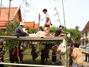 The event is filled with joy and excitement, especially during the “Ching Pret” activity, eagerly anticipated by both children and adults. At the conclusion of the religious ceremonies, offerings placed on the “Pret platform” are thrown down to the waiting crowd below. These offerings include sweets, dry foods, and other items, which people joyfully scramble to collect. According to local belief, receiving offerings from Pret is considered auspicious, bringing good fortune and merit from acts of charity.