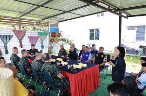 วันที่ 11 กันยายน 2568 เวลา 15.20 น. พลโท ไพศาล หนูสังข์ แม่ทัพภาคที่ 4 / ผู้อำนวยการรักษาความมั่นคงภายในภาค 4 พร้อมด้วย พันเอก ยุทธนาม เพชรม่วง รองผู้บังคับหน่วยเฉพาะกิจยะลา, พันเอก สุรศักร ทั่วด้าว ผู้บังคับหน่วยเฉพาะกิจกรมทหารพรานที่ 47 และคณะผู้บังคับบัญชา เดินทางลงพื้นที่ตรวจเยี่ยมชมรมบ้านต้นกล้าพันธุ์ใหม่ชายแดนใต้ บ้านเหมืองล่าง ตำบลตาชี อำเภอยะหา จังหวัดยะลา เพื่อเยี่ยมให้กำลังใจชาวบ้านในพื้นที่ โดยมี กำนัน ผู้ใหญ่บ้าน ผู้นำชุมชน กลุ่มสตรี และสมาชิกกลุ่มบ้านต้นกล้าพันธุ์ใหม่ ชายแดนใต้ ร่วมให้การต้อนรับอย่างอบอุ่น
