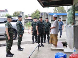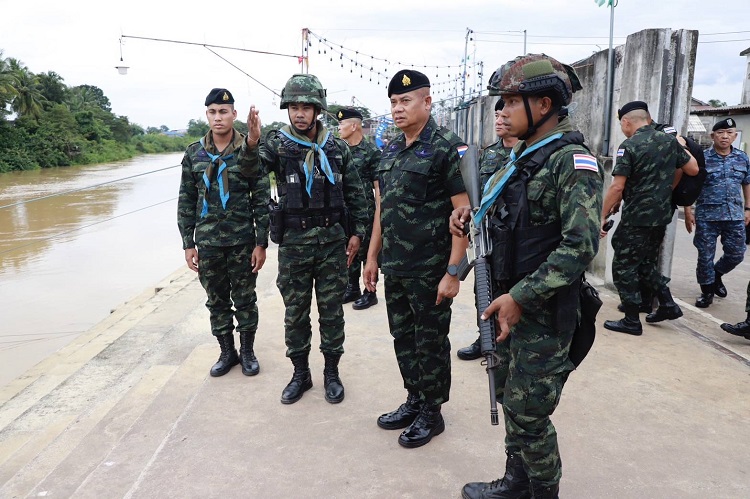 On 17 September 2025 at 3:30 PM, Lieutenant General Paisan Nusang, Commander of the Fourth Army Region and Director of the Internal Security Operations Command Region 4, along with his delegation, conducted a field inspection of the border crossing area between Thailand and Malaysia at the Chomphu border point. The visit aimed to assess the geographical landscape, traffic conditions, and border trade activities, as well as to review security measures at immigration and customs checkpoints.