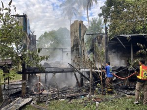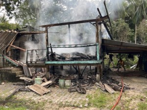 The fire occurred on 16 September at approximately 05:45 hrs at the residence of Mr. Ibrahim Jeh Doloh, aged 41, who lives with his family of five. The house was a single-story elevated wooden structure, measuring 8×10 meters. Initial investigation suggests the cause of the fire was an electrical short circuit. Fortunately, there were no injuries, but the house was completely destroyed, with an estimated loss of 200,000 Baht.