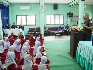 Also in attendance were Colonel Natthawut Srisang, Commander of the 44th Ranger Task Force; Colonel Chanrit Hansarat, Commander of the 43rd Ranger Task Force; representatives from the 22nd Infantry Regiment Task Force; military personnel; as well as teachers, school staff, and students.
