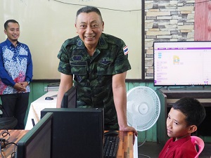 💜 Pada 19 September 2568 jam 14.00 petang di Sekolah Ban Nok, Tumbon Ban Nok, Daerah Panare, Wilayah Pattani – Mejar Jeneral Khajornsak Inthong, Panglima Kawasan Tentera ke-46 / Ketua Pasukan Khas Pattani, telah mengetuai majlis penyerahan peralatan komputer untuk pendidikan kepada Sekolah Ban Nok. Tujuan utama adalah untuk membantu membuka peluang pendidikan kepada anak-anak muda di kawasan pedalaman, serta mempererat hubungan baik antara pihak kerajaan dan penduduk tempatan.