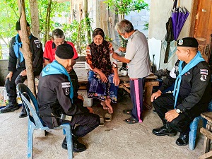 💖 One of the most heartwarming activities involved a home visit to Mrs. Munoh Jeh Ma, aged 66, residing at House No. 104, Village No. 1, Nam Dam Subdistrict. Officers conducted a welfare check, measured her blood pressure, provided health guidance, and distributed essential medical supplies and daily necessities to help ease her living conditions.
