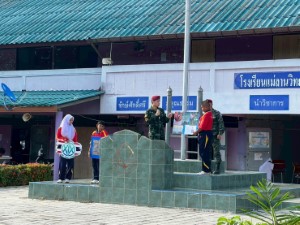 On the same day, Santisuk Unit 506, in cooperation with Taksin Relations Control Unit 551, organized a “5-Minute Flag Ceremony” activity at Maelan Wittaya School, Ban Lutong, Maelan Subdistrict, Maelan District, Pattani Province.