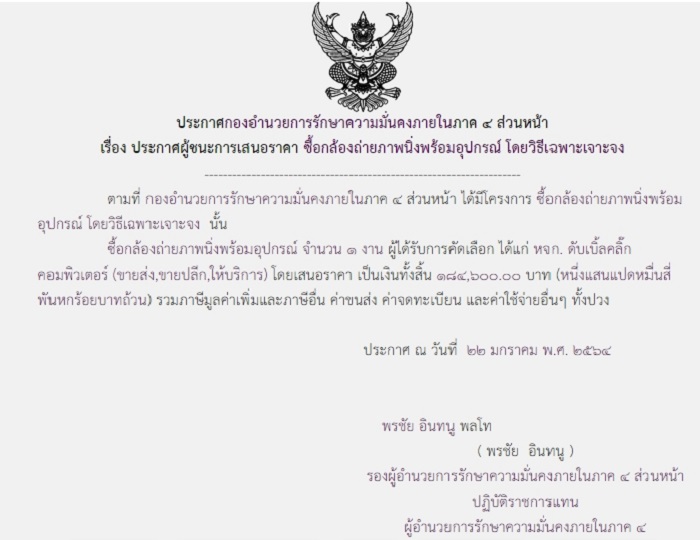 ประกาศผู้ชนะการเสนอราคา ซื้อกล้องถ่ายภาพนิ่งพร้อมอุปกรณ์ โดยวิธีเฉพาะเจาะจง ( 184,600.00 บาท )