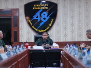 Subsequently, the Commander and his delegation proceeded to Task Force Ranger Regiment 49, located in Sako Subdistrict, Si Sakhon District, to receive an operational performance update. He instructed all personnel to continuously review procedures and maintain readiness 24/7 to ensure the highest level of safety for both troops and civilians.