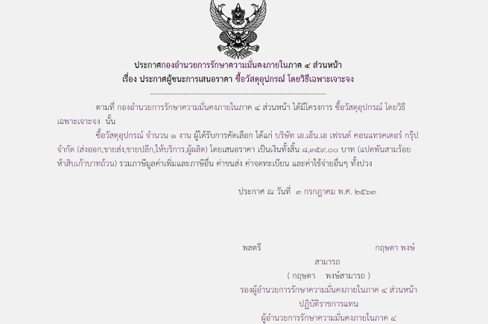 ประกาศผู้ชนะการเสนอราคา ซื้อวัสดุอุปกรณ์ โดยวิธีเฉพาะเจาะจง(๑)