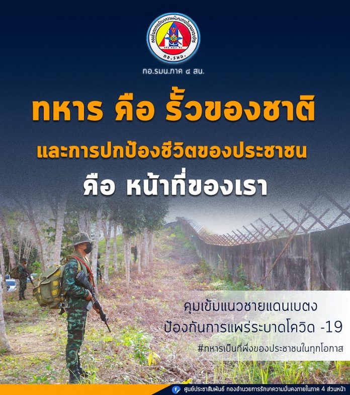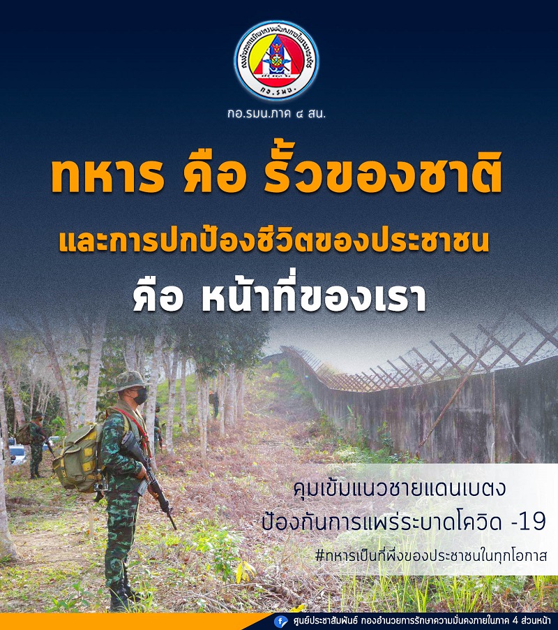 ประชาสัมพันธ์ข่าวประชาสัมพันธ์ “…ทหาร คือ รั้วของชาติ และการปกป้องชีวิตของประชาชน คือ หน้าที่ของเรา…” January 26, 2021 5095 Share Facebook Twitter Google+ Telegram LINE #คุมเข้มแนวชายแดนเบตง #ป้องกันการแพร่ระบาดโควิด -19 #ทหารเป็นที่พึ่งของประชาชนในทุกโอกาส ศูนย์ประชาสัมพันธ์กองอำนวยการรักษาความมั่นคงภายในภาค 4 ส่วนหน้า