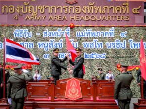 During the ceremony, General Paisan Nusang delivered remarks transferring authority and presented the official flag of the 4th Army Region along with handover documents to Lieutenant General Norathip Poinok, who then accepted the position and command responsibilities. In his speech, the new commander expressed his commitment to continuing the mission, responsibilities, policies, and vision of the previous leadership. He pledged to govern with fairness, care for his subordinates, and lead the 4th Army Region personnel with unity and dedication to progress and sustainability. His goal is to maintain the 4th Army Region as a key security institution for the Southern region.
