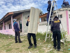 The restroom roof had been severely damaged by strong winds from a recent storm, resulting in numerous broken and dislodged tiles. This damage significantly impacted students’ ability to use the facilities safely and hygienically. In response, the rangers urgently stepped in to replace the roof, ensuring the area is once again safe and sanitary for daily use.