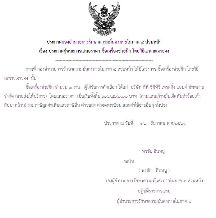 ประกาศผู้ชนะการเสนอราคา ซื้อเครื่องช่วยฝึก โดยวิธีเฉพาะเจาะจง (397,590.00)