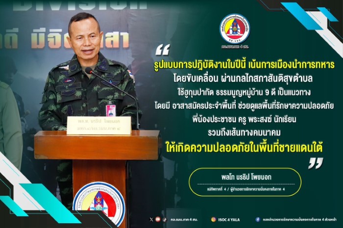 รูปแบบการปฏิบัติงานในปีนี้ เน้นการเมืองนำการทหาร โดยขับเคลื่อนผ่านกลไกสภาสันติสุขตำบล ใช้ฮูกุมปากัต ธรรมนูญหมู่บ้าน 9 ดี เป็นแนวทาง โดยมีอาสาสมัครประจำพื้นที่ ช่วยดูแลพื้นที่รักษาความปลอดภัย พี่น้องประชาชน ครู พระสงฆ์ นักเรียนรวมถึงเส้นทางคมนาคม ให้เกิดความปลอดภัยในพื้นที่ชายแดนใต้