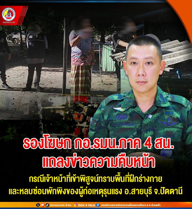 ทั้งนี้ กองอำนวยการรักษาความมั่นคงภายในภาค 4 ส่วนหน้า ขอความร่วมมือและขอขอบคุณพี่น้องประชาชนในการร่วมกันสอดส่องดูแลพื้นที่ เมื่อพบเห็นสิ่งผิดปกติ หรือบุคคลต้องสงสัย สามารถแจ้งเบาะแสได้ที่ สายด่วน กอ.รมน.ภาค 4 สน. โทร 1341 หรือแจ้งต่อ หน่ วยเฉพาะกิจจังหวัด ในพื้นที่ ได้ตลอด 24 ชั่วโมง และขอเรียนให้ทราบว่าผู้ให้การสนับสนุนผู้กระทำผิดด้วยวิธีการต่างๆ เช่น การนำพาซ่อนเร้น การให้การสนับสนุนที่พักพิง หรือการสนับสนุนเสบียงอาหาร จะมีความผิดตามประมวลกฎหมายอาญา มาตรา 189 ต้องระวางโทษจำคุกไม่เกิน 2 ปี หรือปรับไม่เกิน 40,000 บาท หรือทั้งจำทั้งปรับ