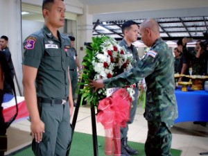 ในการนี้ พลตรี กรกฎ ภู่โชติ รองแม่ทัพภาคที่ 4/รองผู้อำนวยการรักษาความมั่นคงภายในภาค 4 ส่วนหน้า เป็นผู้แทนวางหรีดเคารพศพของ พลเอก พนา แคล้วปลอดทุกข์ ผู้บัญชาการทหารบก / รองผู้อำนวยการรักษาความมั่นคงภายในราชอาณาจักร , พลโท นรธิป โพยนอก แม่ทัพภาคที่ 4 / ผู้อำนวยการรักษาความมั่นคงภายในภาค 4 พร้อมมอบเหรียญบางระจันให้แก่ครอบครัวของ ดาบตำรวจ สมศักดิ์ นาคเสน ผู้บังคับหมู่ กองกำกับการตำรวจตระเวนชายแดนที่ 44 เพื่อประกาศเกียรติคุณยกย่องเชิดชูเกียรติแก่วีรชนผู้กล้าในการเสียสละ ตลอดจนรับมอบเงินช่วยเหลือเยียวยาให้แก่ครอบครัวผู้เสียชีวิต