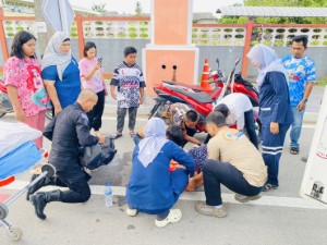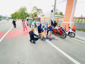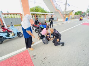 จากการตรวจสอบเบื้องต้นพบว่า ผู้ประสบเหตุมีอาการ โรคลมชักกำเริบ ขณะขับขี่รถจักรยานยนต์ เป็นเหตุให้ ล้มลงและศีรษะกระแทกพื้นถนน กำลังพลจึงรีบเข้าช่วยเหลือปฐมพยาบาลเบื้องต้น พร้อมประสาน หน่วยกู้ชีพและรถพยาบาลโรงพยาบาลรามัน มารับตัวผู้บาดเจ็บส่งต่อเพื่อรับการรักษาอย่างเร่งด่วน