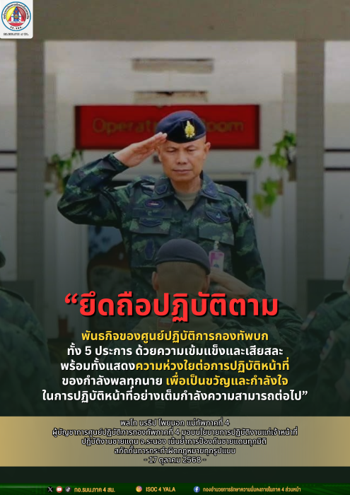 ยึดถือปฏิบัติตาม พันธกิจของศูนย์ปฏิบัติการกองทัพบก