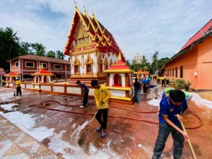 The Peace Task Force, through Peace Teams 401 and 402, in collaboration with Thaksin Relations Team 441, the 45th Ranger Regiment Task Force, the Police Relations Team of Ra-ngae Police Station, the Tanyongmas Subdistrict Protection Unit, the Ruamjai Volunteer Group, the Ra-ngae District Child and Youth Council, the Darussalam Volunteer Group, and the Narathiwat Provincial Youth Council, jointly organized the activity titled “United Volunteers for the Development of Religious Sites” at Wat Chontharawat (Wat Ron), Tanyongmas Subdistrict, Ra-ngae District, Narathiwat Province.