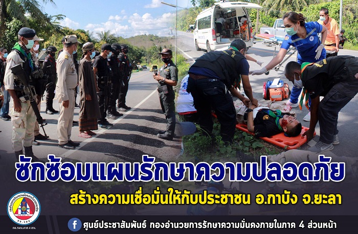 หน่วยเฉพาะกิจกรมทหารพรานที่ 47 พร้อมด้วย รองผู้กำกับการสถานีตำรวจภูธรกาบัง, กำนัน, ผู้ใหญ่บ้าน, ส่วนราชการฯ และอาสาสมัครประจำพื้นที่ อำเภอกาบัง จังหวัดยะลา ร่วมกิจกรรมซักซ้อมการปฏิบัติตามแผนรักษาความปลอดภัยในพื้นที่ 38 อำเภอ (ตามหลักยุทธศาสตร์ประชาชนมีส่วนร่วม) ในพื้นที่อำเภอกาบัง จังหวัดยะลา ประจำเดือนมกราคม 2564 ซึ่งมีการซักซ้อมฯ ณ ที่ทำการบ้านผู้ใหญ่ บ้านกาบัง หมู่ที่ 7 ตำบลกาบัง อำเภอกาบัง จังหวัดยะลา โดยมี นางสาวศรุตา ฤทธิเนียม ปลัดอาวุโสอำเภอกาบัง เป็นประธาน ในการซักซ้อมการปฏิบัติตามแผนรักษาความปลอดภัยดังกล่าว